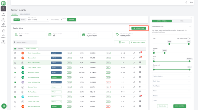 - To view only your selections, click Selected at the top of the map—your chosen dealers will be highlighted.
