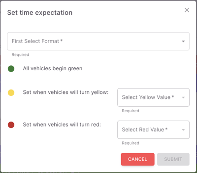 to set up the time in step. You will have to set up the time format you want minutes, hours, days, or weeks. Specify the criteria for when you want the time in step to be highlighted in yellow and then in red.