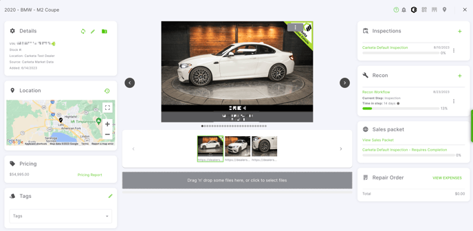 In this section, you can add recon workflows and see the progress on different workflows that are linked to the vehicle.
